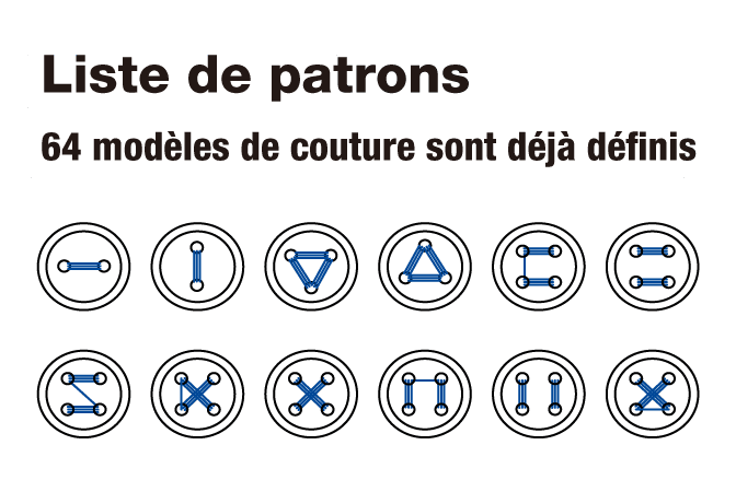64 modèles de couture ont déjà été définis et peuvent être sélectionnés. elle est également capable de réaliser divers motifs de couture.