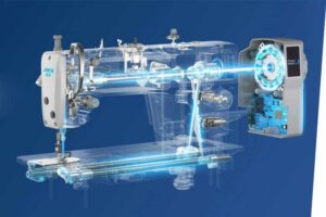 La commande du moteur électrique assure un fonctionnement ininterrompu et stable de la machine, permettant un passage fluide des coutures transversales et tout épaississement sans réduction de vitesse.