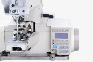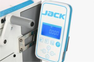 La surjeteuse JACK E4S dispose d’un panneau de commande intégré, réglage de la vitesse de couture, positionnement de l’aiguille et la