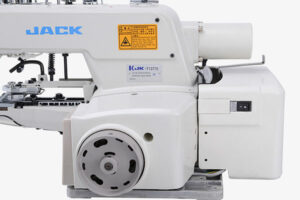 La machine à point noué JACK A2C est conçue pour coudre des tissus légers à moyens (JACK A2C-C) et des tissus plus épais (JACK A2C-CH-7 avec longueur de point étendue). Elle est équipée d’un entraînement par le bas, d’une lubrification centralisée (bac d’huile traditionnel) et d’un bouton d’ajout de points situé près de la barre à aiguille.