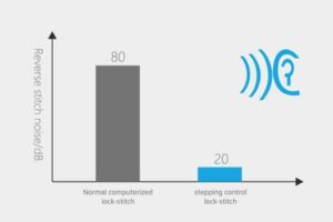 Système de lubrification amélioré – Les taches d’huile sont éliminées grâce à la technologie avancée de tête sèche (la barre d’aiguille et le dispositif de prise de fil ne nécessitent plus de lubrification).