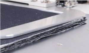 Machine automate de couture électronique programmable, avec champ de couture (X-Y) : 200 x 100 mm pour la réalisation d’assemblages complexes dans des matériaux très épais et avec des gros fils