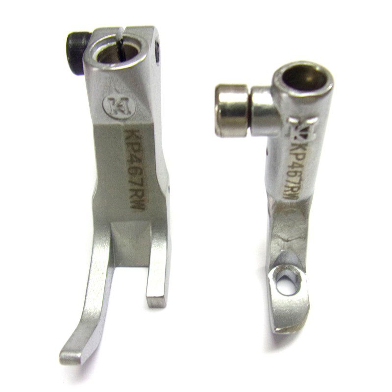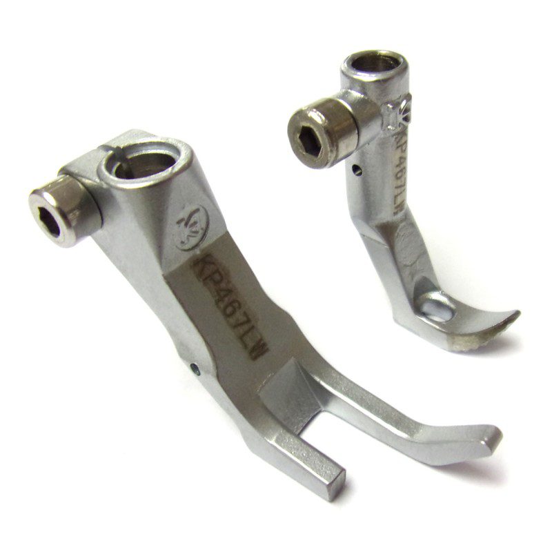 Largeur du pied-de-biche : 10 mm Largeur du pied d’alimentation : 4,5 mm Pieds-de-biche réglés pour un fonctionnement étroit.